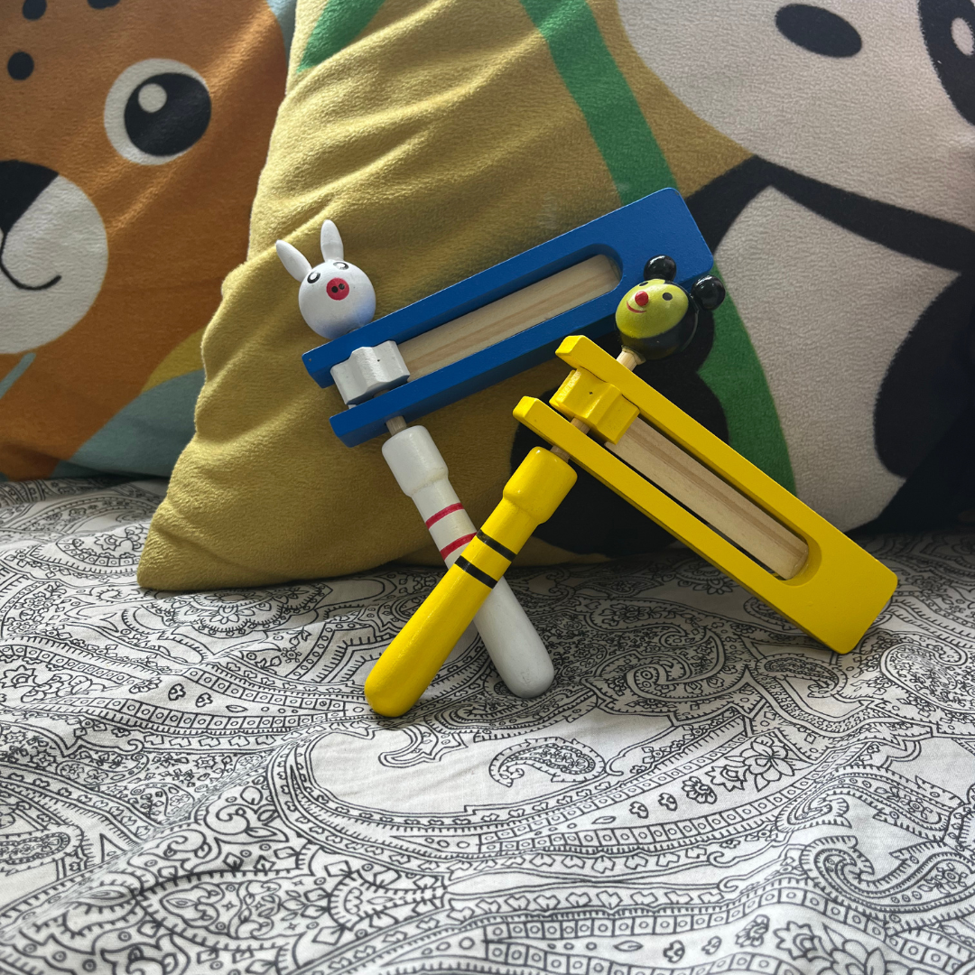 The L-shape design makes it easy for tiny hands to grip, while the gentle rattling sound keeps babies engaged and curious. Painted with non-toxic, child-safe colours, it encourages sensory development, hand-eye coordination, and motor skills in the most natural way.